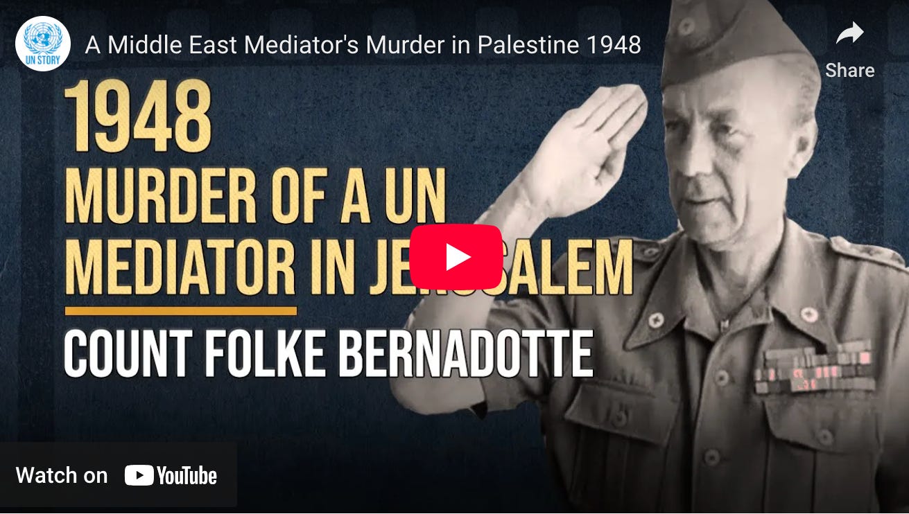 The names of the conspirators in this first derailing of a Two State Solution by the UN, by the premeditated murder of UN diplomats are forgotten today, except one.